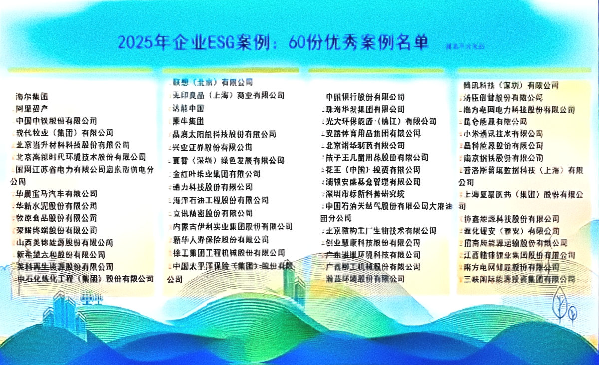 2025年企業(yè)ESG優(yōu)秀案例名單