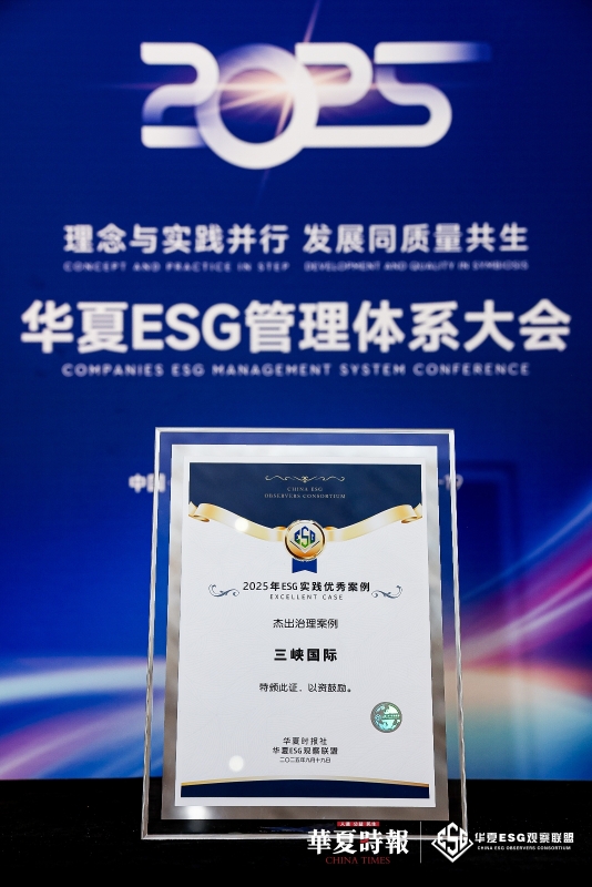 9月19日,由《華夏時(shí)報(bào)》主辦的“2025華夏ESG管理體系大會(huì)”在北京召開。大會(huì)現(xiàn)場(chǎng)揭曉“2025年ESG優(yōu)秀實(shí)踐企業(yè)案例”評(píng)選結(jié)果,三峽國(guó)際憑借在治理領(lǐng)域的突出表現(xiàn)入選“杰出治理案例”。